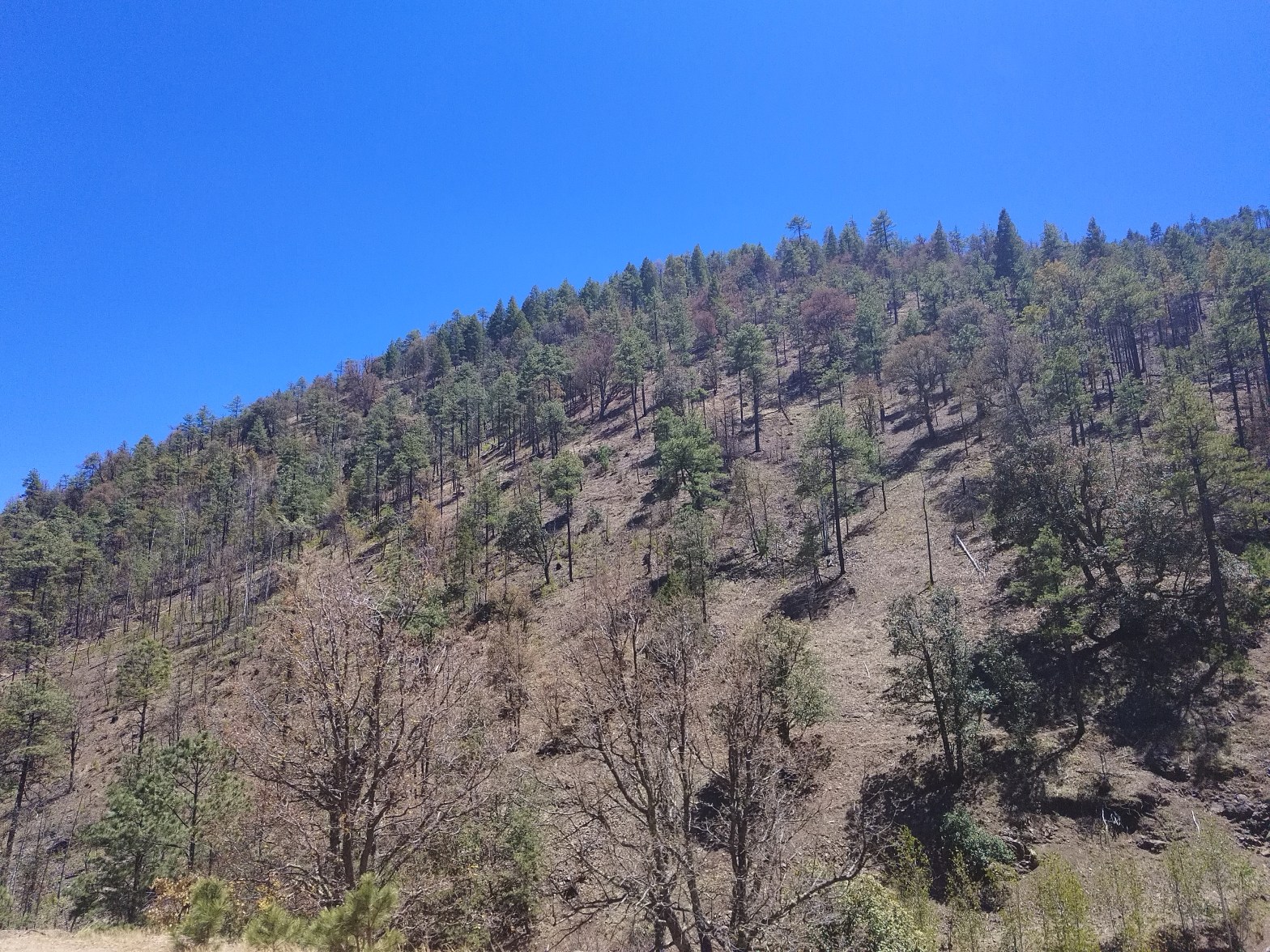 Esta mañana transcurria con algunos contratiempos, y ya bastante tiempo he tenido en esto como para llegar a saber que el Evangelio no avanza sin obstáculos. Pero a su vez, este panorama es el que nos lleva a confiar todo a Dios. Ha darnos cuenta que sin el nada podemos hacer, y que lo que hacemos es porque el nos lo está permitiendo. Después de recorrer por 50 minutos la Sierra llegamos a San Juanito donde estamos yendo a visitar el barrio de El Pinal, ahí pudimos hablar con unas 7 personas y presentarles la esperanza que el hombre puede recibir por medio de la fe en Cristo.