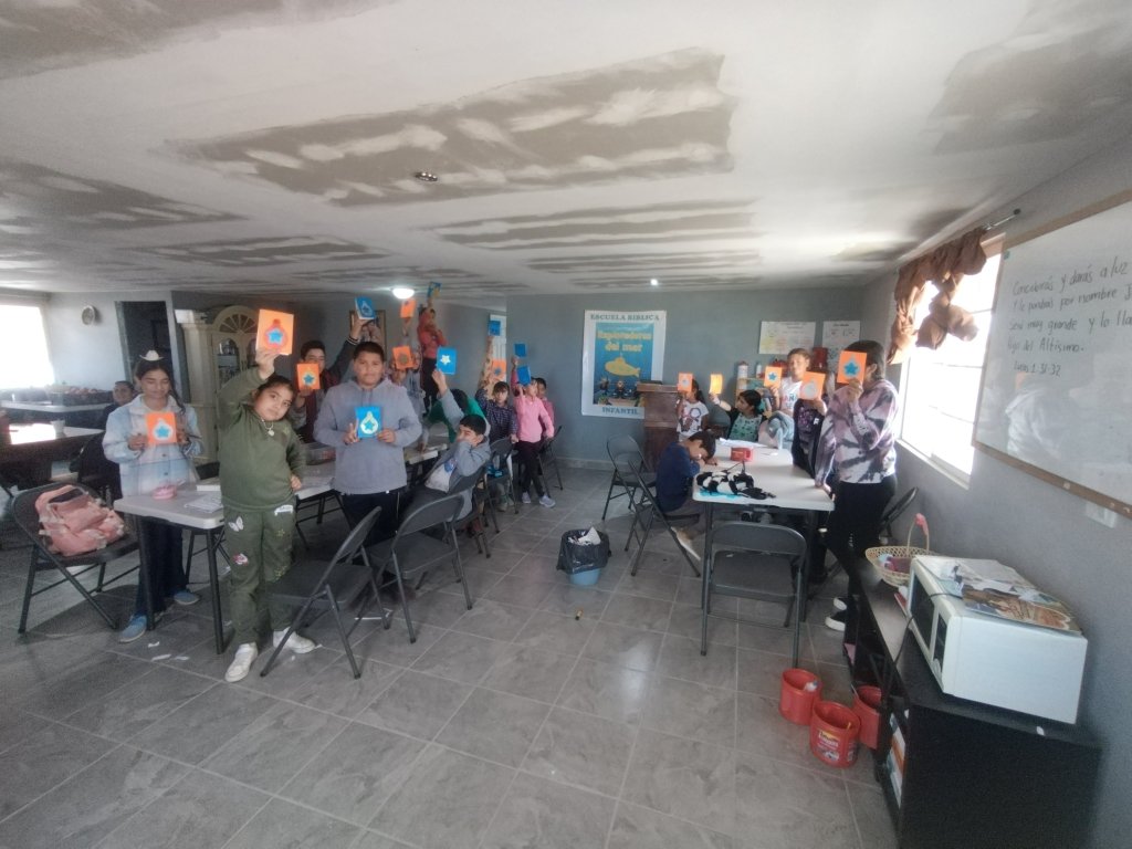 También, la Escuelita Biblica continúa adelanté, y desde hace dos semanas y por motivo de la Navidad, hemos empezado a estudiar con los niños de la primera venida de Cristo.